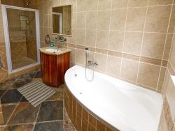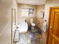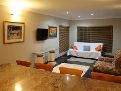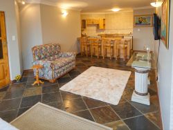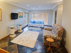This expansive property is worthy of its location on a golf estate overlooking the ocean. This luxury apartment is situated on the famous Mossel Bay Golf Estate. 1 bedroom with a sea view. It has two single beds and one sleeper couch. An en-suite bathroom with toilet, bath, shower and basin. The kitchen is fully equipped.