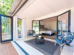 This private luxury cottage sleeps 4 and has 2 en-suite bedrooms, a fully equipped kitchen and breakfast bar, lounge area, and an outdoor entertainment area with outdoor furniture and a splash pool.
