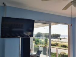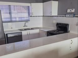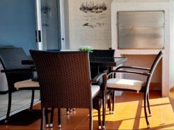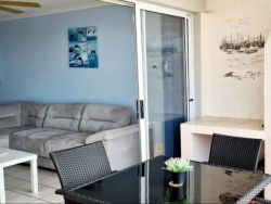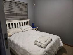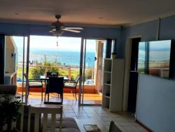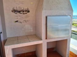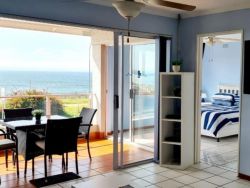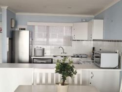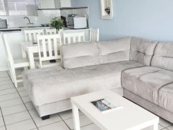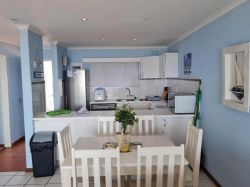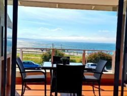 Overlooking Santos Beach and the ocean, 97 De Bakke Terrace is a 3-bedroom self-catering apartment for 6 people within the De Bakke Terrace complex, offering easy access to the beach and attractions and activities in Mossel Bay. The lovely apartment opens to a balcony with a built-in braai and sea views, and features 3 rooms with a comfortable double or queen-size bed, sharing the use of 2 bathrooms, one with a bath and overhead shower and a second en-suite shower. The open-plan kitchen features a stove and oven, microwave, fridge, tea and coffee-making facilities and a dishwasher. Meals can be enjoyed at the dining table and the lounge offers comfortable seating and a TV with DStv. Wi-Fi is available and the living area opens onto the covered, furnished balcony.