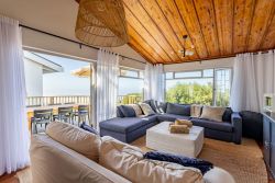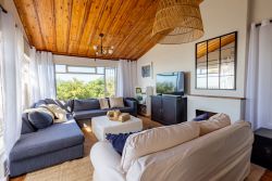 This light and bright beach holiday home offers relaxed seaside living just a 5 minute walk from the golden sands of Keurbooms Beach and Enrico’s restaurant. The living areas are open plan and the cosy and comfortable lounge flows effortlessly onto a lovely patio, the perfect spot to enjoy al fresco dining at the outdoor table while soaking up the salty breeze and admiring the sea view. The kitchen is fully equipped and connects to the dining area, perfect for family meals or casual entertaining. There are three well-furnished bedrooms, the serene master bedroom has a spectacular ocean view and one of the bedrooms is a bunk room which is ideal for children. The bathrooms are modern and newly renovated. The back of the house flows into a shady courtyard, fynbos garden and braai area, offering another beautiful space to relax in. This home is a welcoming space to kick off your shoes and relax, enjoy long beach walks and the natural beauty that Keurbooms has to offer. Please note that the driveway is very steep and therefore only suitable for vehicles that can navigate steep driveways, in addition it is steep when one walks up or down the drive and therefore not suitable if this will be difficult for tenants to navigate. This property is not equipped with backup power however there is a gas stove, rechargeable lamps and a basic UPS.