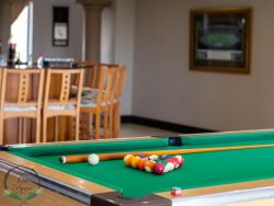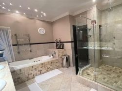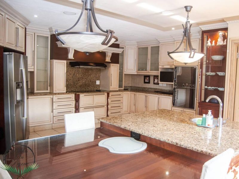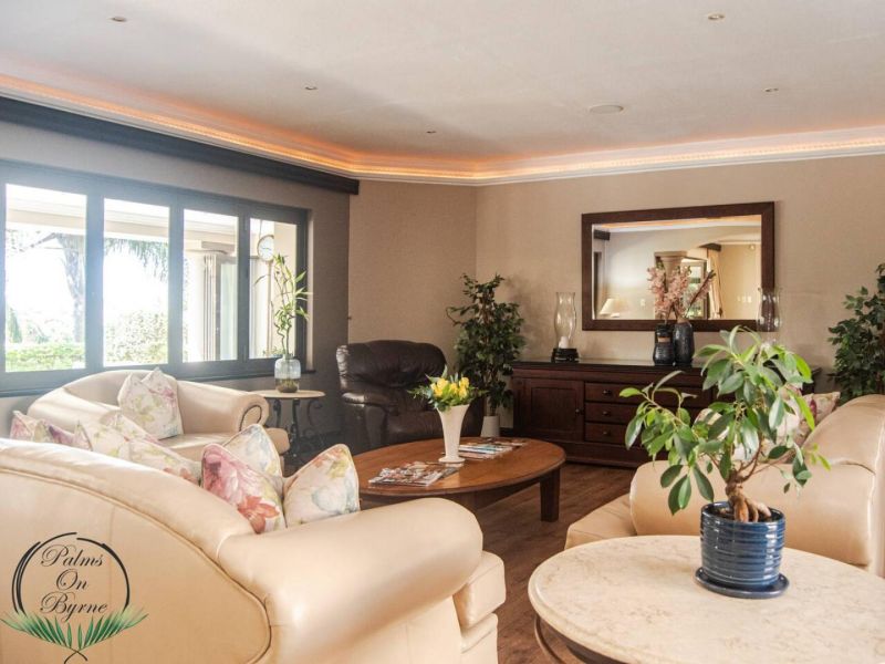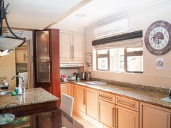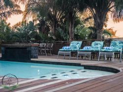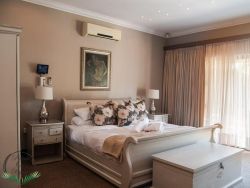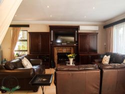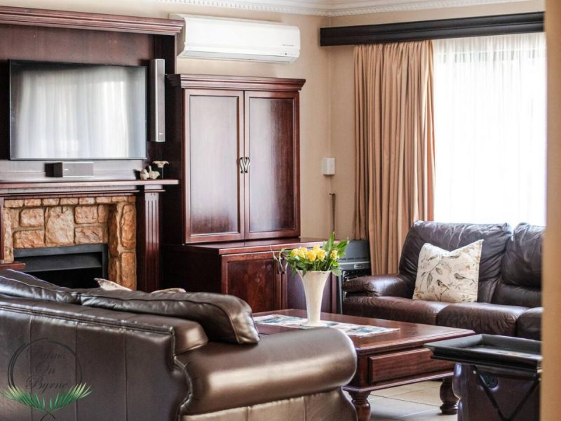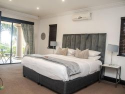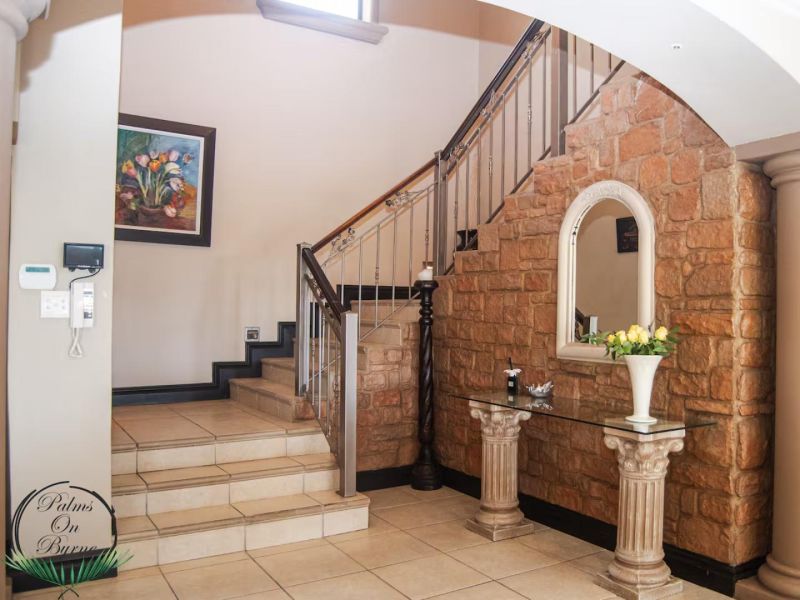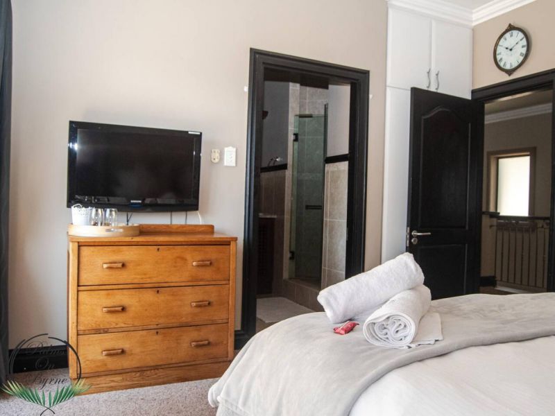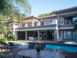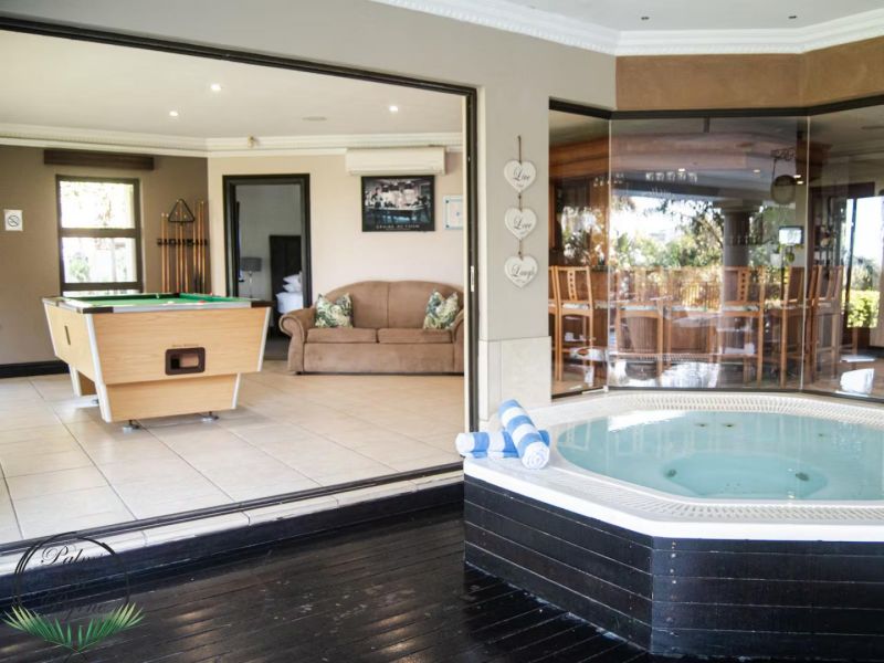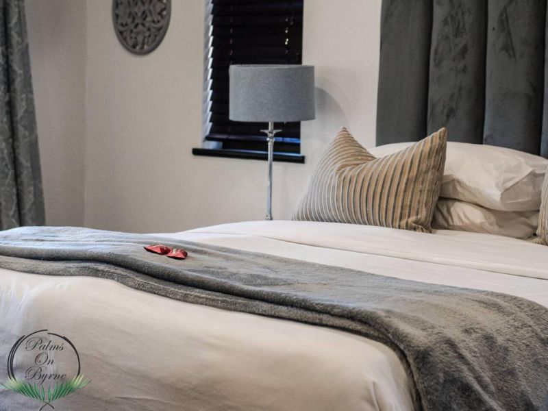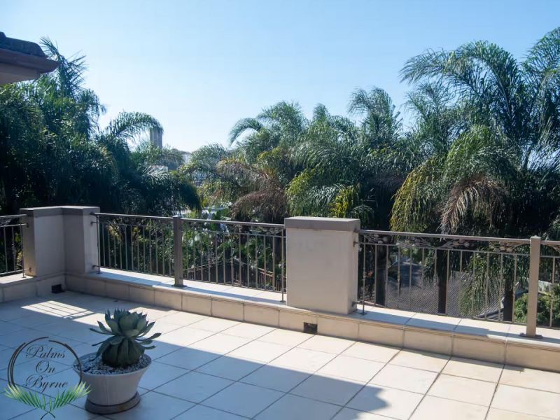 Palm on Byrne is an upscale self-catering residence situated in Durban, offering a lavish stay for groups. This spacious home features five bedrooms and can comfortably host up to ten adults, two children, and one baby. The accommodation includes a main bedroom with a king-size bed and an en-suite bathroom featuring a spa bath and shower, while the remaining four bedrooms each have a queen-size bed and a full en-suite bathroom. For families, a cot is provided, and one room includes a sleeper couch for children. Linen and towels are supplied. The kitchen is fully appointed with a fridge-freezer, stove, oven, microwave, and all essential crockery. A separate scullery offers a dishwasher, washing machine, and tumble dryer for added convenience. The house provides both a spacious dining area and a comfortable living room with a TV. Complimentary Wi-Fi is available throughout the property. For leisure and entertainment, the house boasts an indoor area with a bar and a pool table. This opens to a large patio featuring ample seating, braai facilities, and a relaxing jacuzzi. The patio leads directly out to a sparkling swimming pool, creating the perfect outdoor space for enjoyment. The residence is also conveniently located near major attractions like the Sunningdale Centre, La Lucia Mall, and Gateway.