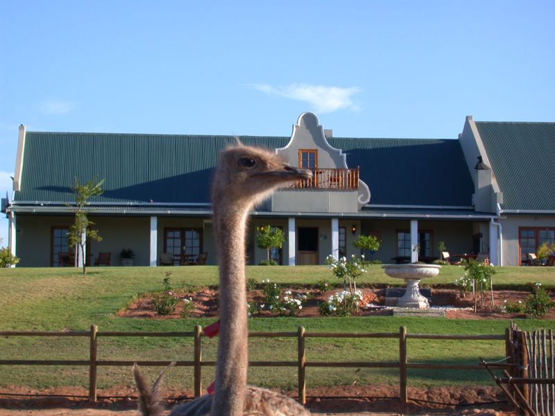 There is a farm in the heart of the Klein Karoo…where time stands still…where grassy plains meet the blue sky and where the sun sets in an explosion of colour over the great Swartberg Mountains. Hanlie and Viljee Keller invite you to enjoy the warm hospitality of their luxury guest house, Mooiplaas (meaning ‘beautiful farm’) with its breath-taking views. Mooiplaas a real working ostrich farm, which also farms maize and alfalfa, has been in the family for four generations. The guest house is converted from the old farm house and retains the traditional cape-dutch façade.
