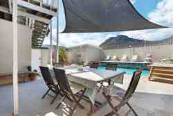 De Beach House Guest House biedt een harmonieuze mix van architectuur en inrichting, uit vervlogen tijden maar gecombineerd met de gemakken van de moderne tijd. Alle negen kamers (allen met eigen badkamer) bieden alle comfort en gemak, in combinatie met praktische elementen en een smaakvolle inrichting. Het uitzicht op de bergen vanuit alle kamers maakt het ontwaken elke ochtend weer één groot feest. Het houten terras rondom het zwembad en het hogere terras bij vier kamers bieden de perfecte plek voor zonne-aanbidders. Met een drankje of cocktail in de hand is het terras een perfecte, romantische setting met onvergetelijke zonsondergangen en uitzicht over de baai. Onze warme, vriendelijke en professionele gastvrijheid stelt de wensen van onze gasten op de eerste plaats. Veilig parkeren en beveiligingscamera’s die het gehele terrein bewaken. Word heerlijk wakker en geniet van een uitgebreid Engels of europees ontbijt.