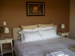 Onze "Huwelijkskamer" bevindt zich in ons hoofdgebouw en heeft extra een aangename rotan zithoek waarin u rustig kan relaxen met een heerlijk glas "Kaapse" wijn. Vanop het balkon (40m2) met tuinmeubelen kan u genieten van de adembenemende zichten (180°) op het Hottentots-Holland gebergte, de Helderberg en de witte zandstranden van False Bay. Deze luxe kamer is uitgerust met luxe boxspring bedden (180x210) met 100% wit bed- en badlinnen, de kamer is voorzien van een dienblad met koffie en thee faciliteiten (wordt u gratis aangeboden, een minibar, draadloos internet en flat screen TV. Onze ruime ensuite badkamer is voorzien van een luxe bad, een haardroger, zachte badjassen, badslippers, en toiletartikelen om u te verwennen.