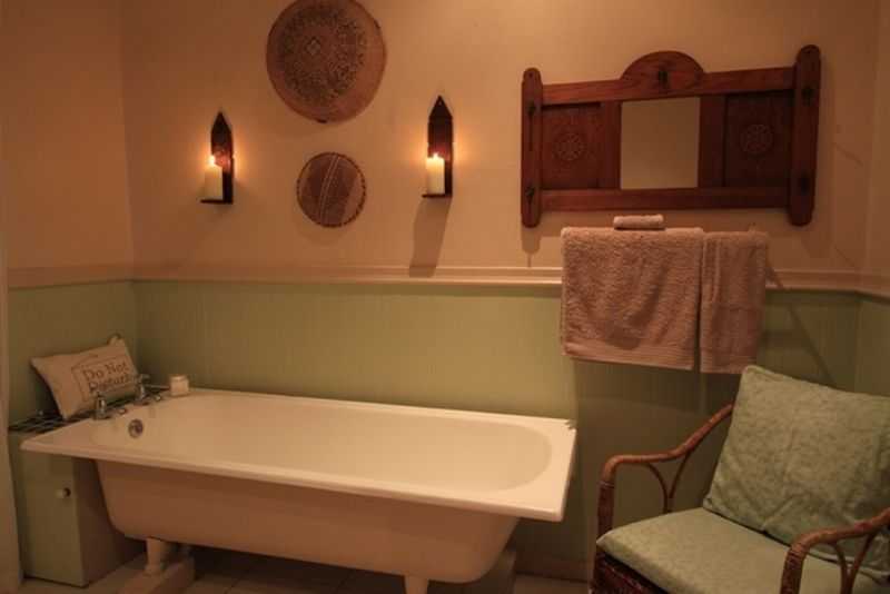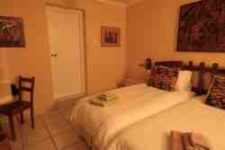 Cosy self catering cottage, spacious bedroom (single beds) with full en suite bathroom - bed can be made in to a king size, and the cane day couch makes for comfortable sleeping for a 'medium' sized guest at an additional charge of R350.00 per night Everything you need to self cater, with private braai area, patio, and parking behind a locked gate. Ceiling fan, hairdryer, DSTV, DVD/CD player. Laundry service available. Whilst we can't offer the buzz of night clubs etc., we can ensure a variety of bird life, beautiful and peaceful surroundings, excellent biking trails and the warmest of welcomes!!