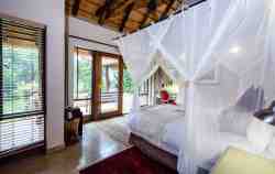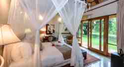 Five comfortable colonial style bedrooms offer a choice of single or king size beds, all elegantly draped with spacious mosquito nets. Each room overlooks the landscaped garden, which provides a playground for the resident monkeys, abundant squirrels, tortoises and a host of chattering bird species.
