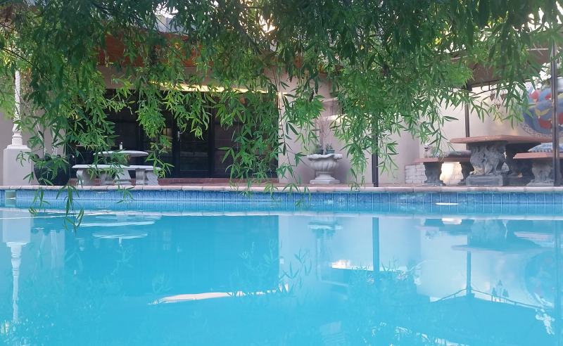 Nestled between the Kamanassie- and Olifants rivers just 3 km outside Oudtshoorn on tar road. Enjoy swimming, walking, photography, canoeing on Kamanassie river bordering the historical Red Enon formations with conglomerates from millions of years ago