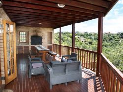 - Private wooden deck / Veranda with a built-in braai (BBQ) and outside kitchen area including washbasin (hot and cold water).