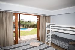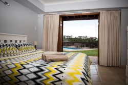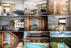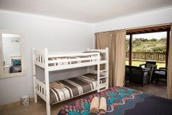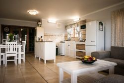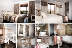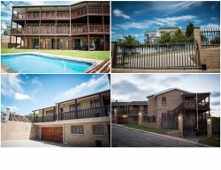 Our Ground Floor Apartment (230m2) consists of 4 bedrooms plus 4.5 bathrooms (sleeps 14). The communal swimming pool and Jacuzzi are open to all guests and are beautifully placed against the beautiful background of Noorsekoof Nature Reserve The unit is fully furnished and includes: An open-plan kitchen, dinner table and utility with all required appliances. A large, open-plan, living area with comfortable lounge suite and opening out onto the wooden deck. Flat-screen TV with satellite connection. Private wooden deck with a built-in braai (BBQ) and outside kitchen area including washbasin (hot and cold water). Deck suitably furnished with dinner table / chair combination as well as outside lounge suite. The double garage, with automatic (remote operated) door, has space for two vehicles. Additional parking available on paving in front of garage and inside security gate. Security includes a palisade fence with automatic gate and modern alarm with panic function with armed response.