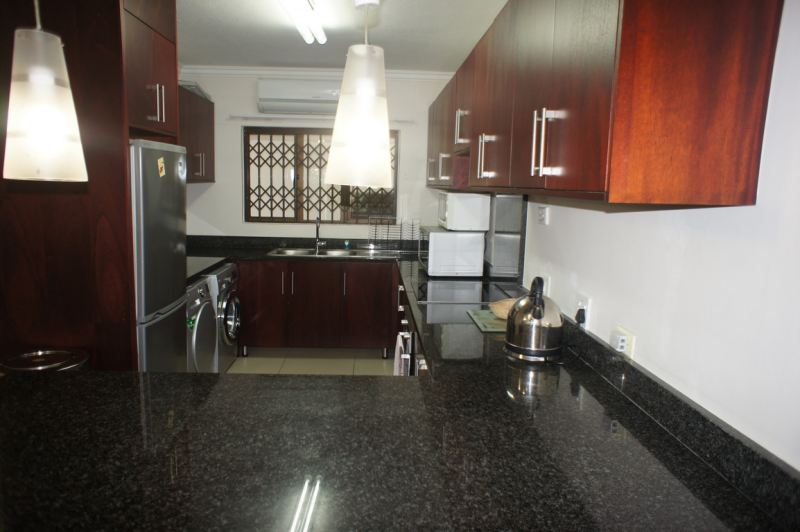 17 La Pirogue is a comfortable self catering air conditioned ground floor apartment in a secure complex and sleeps 8 people. This unit is less than 100 meters from the beach and in walking distance to a supermarket and popular Mozambican Restaurant. A safe and secure parking bay has been allocated to this unit and accessed by remote control. The unit consists of the following: Open plan kitchen equipped with dishwasher, microwave, fridge/freezer & stove/oven. • The open plan lounge has a 50” flat screen TV, DSTV (connected) and DVD player. • A private patio leads off the lounge and 2 of the 3 bedrooms with patio furniture and weber braai. • All bedrooms have TV sets. • The unit is air conditioned. • The large main bedroom has a Queen size bed, TV, dresser and full bathroom en suite. • The 2nd and 3rd bedrooms share the 2nd full bathroom. • The second bedroom has 2 x Double Bunks and 1 x single Bed. • The third bedroom has a Queen size bed and a single bed. • The unit has parking accessed by a remote controlled gate. • All linen, bath towels, duvets and pillows are provided (BRING BEACH TOWELS and toilet requirements.) • The unit is serviced daily (except Weekends & Public holidays) A R1000 refundable breakage deposit has to be paid 2 weeks prior to occupation.