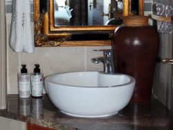 This Guest House offers two beautifully appointed bedrooms each with its own unique design style. The rooms are furnished with traditional antique wood furniture with an abundance of beautiful original artwork on the walls. Each bedroom sleeps two and offers luxury, comfort, style and warmth at affordable prices. A separate lounge upstairs allow you to sit in peace and tranquillity, read and just watch the beauty of the ocean. Each bedroom has its own en suite bathroom, comfortable double beds, DStv, free Wi-Fi, and tea and coffee facilities. The guesthouse offers dedicated safe under-cover parking behind electric gates.