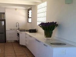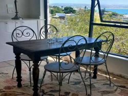 Villa Vista is unique and superior in Mossel Bay because of its location and walking distance just above Santos Beach and Harbour. Villa Vista features a northerly view over the bay with the Majestic Outeniqua Mountain range as a backdrop. Villa Vista has thus protected from both the South Easterly and South Westerly winds making the private patio area usable all year round. Villa Vista is furnished with the best upmarket and modern furniture, fittings, and utensils. The private parking entrance and setting ensure that you will only see your host when you arrive and book out again. *Wi-Fi *Microwave *Flat Screen TV *Shower *Kitchen *Free Parking *BBQ facilities *Laundry service *Children's play area The suburb of Santos is upmarket with beautiful modern houses as well masterfully restored sandstone houses from the early days. the suburban kids still play in the streets and skateboard down to the beech. The Bartolomeu Dias Museum, Harbor, Restaurants, and CBD are within walking distance. The Point Area is a bit further but 2 bicycles are available for rent.