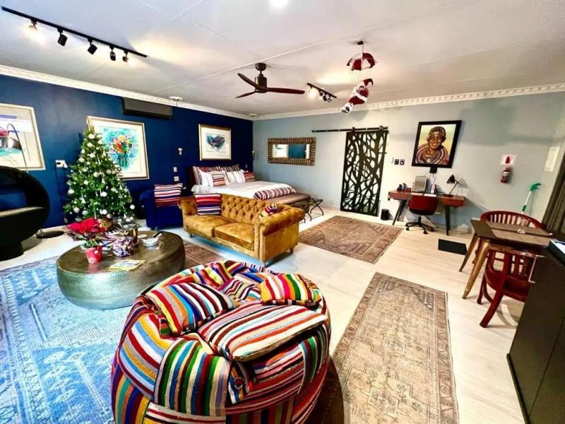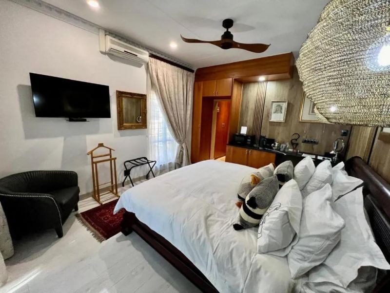 Forty 4 on Hoog Luxury Accommodation welcomes you with genuine warmth and hospitality. This exceptional establishment is the culmination of over 30 years of award-winning expertise in the hospitality industry, meticulously designed and run by its passionate owners. It features a beautifully manicured garden, a refreshing swimming pool where guests can unwind on the sunbeds with a good book. The dedicated braai (barbeque) area and inviting fire pit provide the perfect setting for memorable evenings under the stars. Their super spacious and luxurious rooms are a testament to sophisticated design and unparalleled comfort. The Junior Suite, Junior Suite with Garden View, and larger Junior Deluxe Suite are ideal for both business and leisure travellers, each featuring an elegantly designed shower-only bathroom. Experience true spaciousness in their super luxurious King Deluxe Suite, boasting an inviting lounge area, a full bathroom with bath and shower and a cosy bio-ethanol fireplace. For the discerning traveller who appreciates the finer things in life, the spectacular Presidential Suite is truly a masterpiece, where guests can revel in the comfort of an extra-length king bed covered with a sumptuous Hungarian duck down duvet. This suite also features a full bathroom, a charming wood fireplace, a well-appointed kitchenette, and a dedicated study. All suites include an extra-length king-size bed, covered with high-quality Egyptian cotton linen, with all bathrooms complete with complimentary toiletries, bathrobes and slippers. For added convenience, all rooms include a microwave, bar fridge, and tea and coffee facilities as well as a complimentary fruit for your enjoyment during your stay.