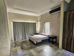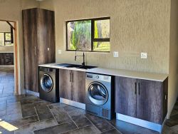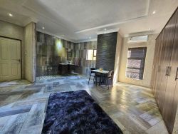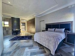 Nestled within the prestigious Peninsula Estate in Oranjeville, Freeman Manor - Peninsula is an unparalleled luxury villa. This exceptionally spacious and beautifully appointed residence offers every modern convenience and thoughtful amenity for an uplifting stay. It serves as the ideal, exclusive retreat for large families or sophisticated groups of friends seeking a five-star experience in total privacy. Designed for unparalleled comfort and privacy, the villa features twelve lavish, individually designed en-suite bedrooms, each appointed with a comfortable queen-size bed. This generous setup ensures every guest enjoys a private retreat, perfectly suitable for large families or sophisticated groups of friends, with a maximum capacity of twenty-four guests. The en-suite bathrooms offer convenience and choice; all bedrooms are equipped with modern walk-in showers, and three feature relaxing soaking baths. The heart of the home is the expansive, open-plan living area, engineered for seamless socialising and dining. The area centres around a gourmet-ready kitchen, fully equipped with an oven, stove, microwave, fridge-freezer, and dishwasher, plus the modern convenience of an air fryer. Guests can gather casually at the breakfast bar with stools. Adjacent to the kitchen, an 8-seater dining table sets the scene for communal meals, leading directly into the primary lounge area. This inviting space features comfortable couches, a TV, and a cosy fireplace, ideal for relaxing evenings. Outdoors, guests can relax in the lush gardens, which feature a koi pond, a braai area, and a swimming pool