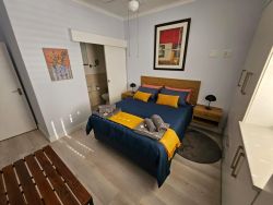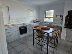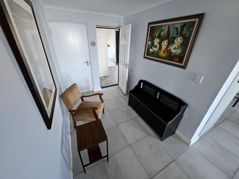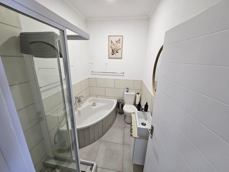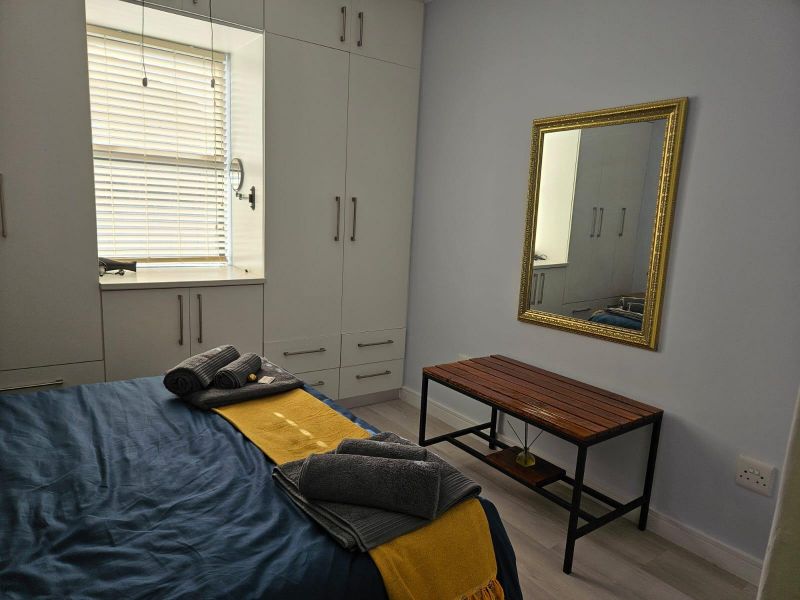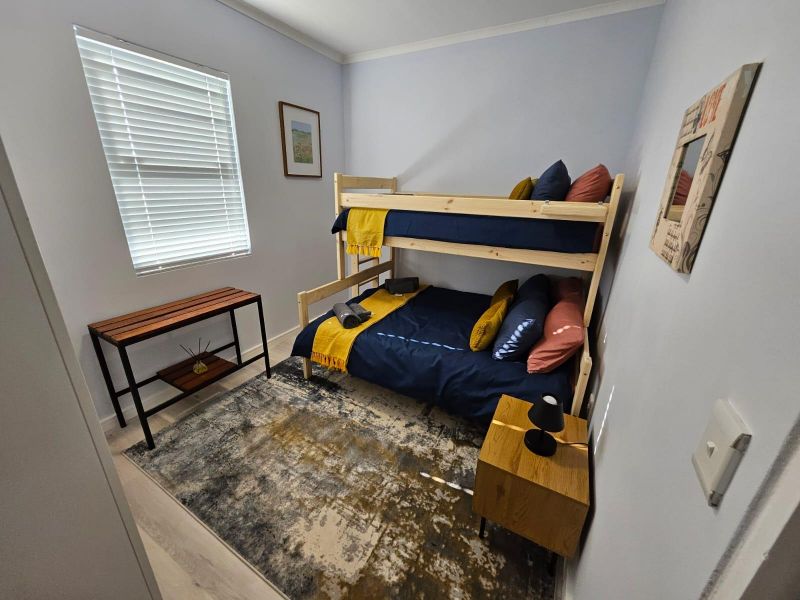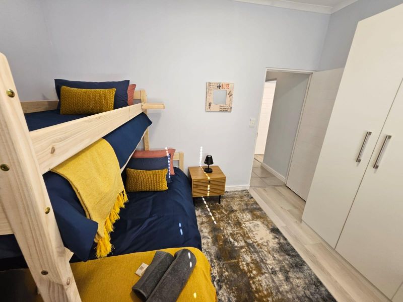 Saltwater Self-Catering is nestled in the elevated and serene Hoogland Security Estate on the West Coast. This ground-floor holiday home offers breathtaking sea views and 24-hour gated access. You'll enjoy peace of mind in a nature-rich estate where wildlife roams freely and greenbelts connect the community. This comfortable West Coast holiday home sleeps up to 7 guests and offers breathtaking sea views. The home features two bedrooms, the main has a queen bed with an en-suite shower, toilet, and basin, while the second offers a tri-bunk bed with a double at the bottom and a single on top, sleeping 3. The second bedroom has access to a separate bathroom fitted with both a bath and a shower. A sleeper couch provides additional sleeping space, and all linens, towels, and bathroom amenities are provided for your comfort. The fully equipped kitchen includes a Nespresso machine, induction stove, indoor Braai/BBQ facilities, and a dining table for shared meals. This flows into an open-plan living room with comfortable seating and a 55-inch smart TV, creating a warm and spacious area to relax. An open office space with a desk and Wi-Fi adds convenience for remote work. A welcome hamper awaits guests on arrival, featuring welcome sherry, Nespresso pods, coffee, tea, water, milk, ice and Sloom pillows. Wine and champagne are available during your stay at an extra charge. Complimentary Godding & Godding bathroom amenities are provided, while Godding & Godding Silk Skin Care products, Braai wood and ice packs are available upon request and at an additional charge. Yoga mats are provided for guests' use, and a selection of board games is available for entertainment. Step outside to a patio with outdoor seating for alfresco dining and sundowners, overlooking the garden, estate, and ocean. Guests enjoy a private entrance, secure parking, within an estate with continuous security presence, with easy access to Saldanha's town centre, beaches, and marina.
