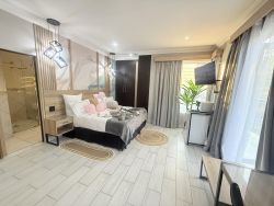 A Luxury Escape Near OR Tambo Welcome to Africa Paradise Boutique Hotel, an elegant sanctuary in Benoni, ideally located for both business and leisure travellers. Experience sustainable luxury and personalised hospitality designed to create unforgettable stays and celebrations. Step away from the buzz of Johannesburg and into a serene world where comfort and care take centre stage. Our commitment to service excellence includes convenient amenities such as a reliable airport shuttle to and from OR Tambo International Airport (available at an additional fee). We take pride in offering warm hospitality, wholesome cuisine, and exceptional value in a refined, welcoming setting. Elegant Rooms and Exceptional Dining Our hotel features 11 stylishly appointed rooms and an exclusive suite, each thoughtfully designed with comfort in mind. Enjoy modern amenities including air-conditioning, heating, jet spas, and in-room tea and coffee facilities. Rooms offer added indulgences such as Jacuzzis, balconies/ patios, fridges, microwaves, Satellite TV, and Netflix. Savour exquisite local and international dishes at our on-site restaurant or experience our signature floating pool basket dining—a unique way to enjoy breakfast, lunch, or a romantic dinner. Later, unwind at the lively hotel bar, where handcrafted cocktails and premium beverages await. Relaxation, Romance, and Recreation At Africa Paradise, every detail is designed to help you relax and reconnect. Take a refreshing dip in the sparkling outdoor pool and Jacuzzi, or enjoy a romantic picnic in our tranquil garden. Fitness enthusiasts can make use of the on-site gym or braai facilities, while couples may book our private balcony overlooking the scenic Korsman Bird Sanctuary for an intimate dinner. Conveniently close to major malls, restaurants, nightlife, golf clubs, and casinos, our hotel combines charm and accessibility. With backup power, free Wi-Fi, and secure parking, we ensure a seamless, comfortable stay from start to finish.