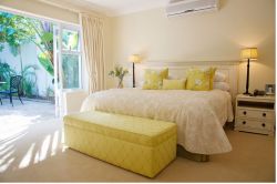 Spacious rooms with private patios leading into a lush garden. King bed with twin option on request. Ensuite bathroom with walk-in shower and deep bath. Air conditioning. Robes and slippers. Tea and coffee tray. Free WiFi. Room safe. Healing Earth amenities. A tranquil and comfortable base in Cape Town’s oldest wine valley.