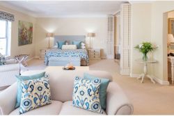 Styled by Last Word for elegant living with space to spread out and unwind. These very large suites offer elegant comfort with separate lounge areas for relaxing or working. Most open onto private patios and gardens. One suite has a first-floor balcony with garden views. King bed with twin option on request. Ensuite bathroom with walk-in shower and deep bath. Air conditioning. Robes and slippers. Tea and coffee tray. Free WiFi. Room safe. Healing Earth amenities.