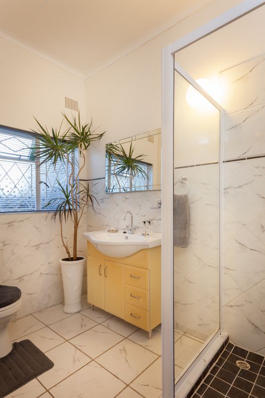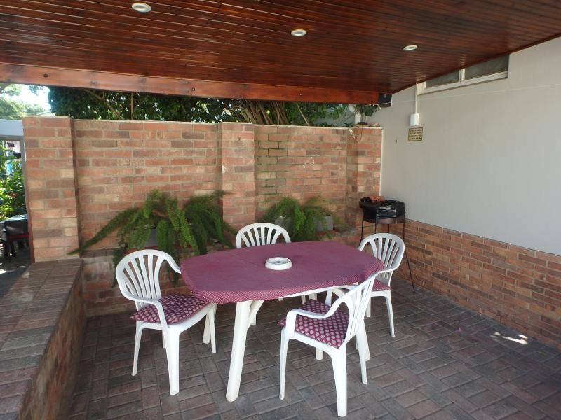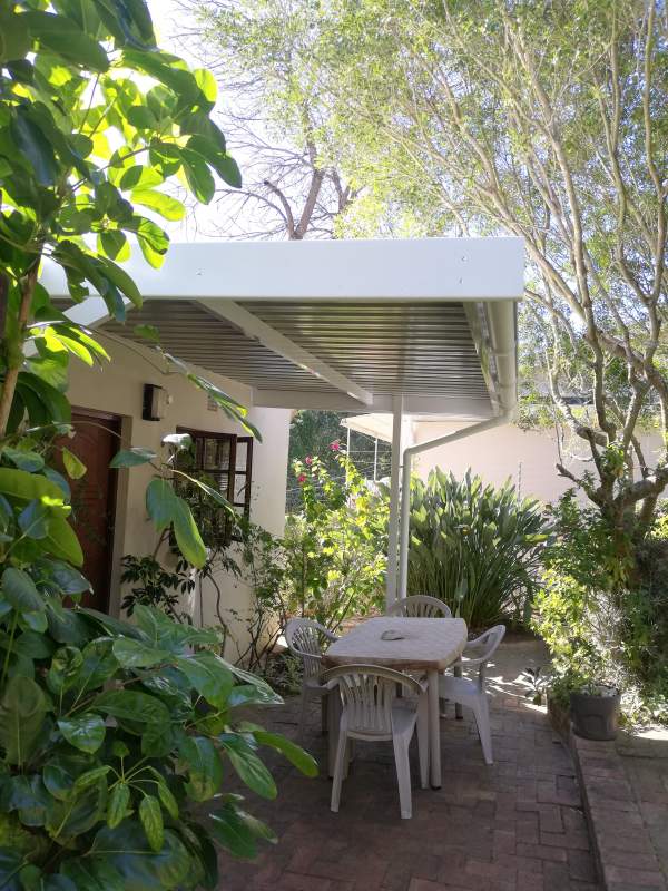 Three reasonably priced self-contained garden flats each with their own private entrance, flats are completely separate.. One of the flats sleeps 4 and the other two flats- 2 people. These self catering / bed and breakfast flats have en-suite bathrooms with showers, well equipped kitchenettes, tea/coffee facilities, FREE (fiber) Wi-Fi / internet, DSTV Hotel Bouquet, TVs, hairdryers, fans, heaters, hot blankets (electric) and secure undercover off-street parking with remote control access to bring vehicles into our yard & electric fence. Additional beds in the main house (en suite) if required. The braai facility near the sparkling pool on your doorstep often comes in handy on this sunny side of town. Children welcome. Pets welcome by arrangement. Choice of self-catering or B&B. REASONABLE RATES.