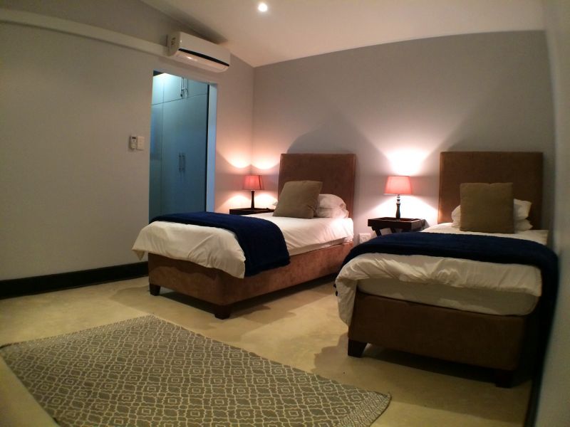 The open plan design in the main living area allows for great entertainment with an open plan kitchen, dinning area, TV lounge with full bouquet DSTV and DVD player, opening up on both sides with zigzag glass doors that lead out onto the veranda where there is a braai area and plunge pool with safety net for kids.