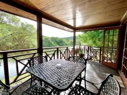 Riverfront two-bedroom unit, fully equipped for self catering with full bathroom and deck overlooking the river. Main bedroom has a double bed, the second room has twin beds. Linen and bath towels included