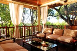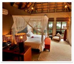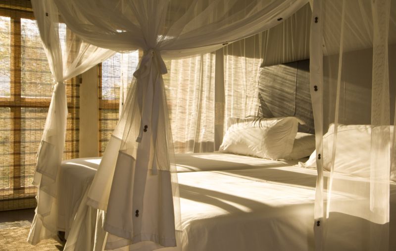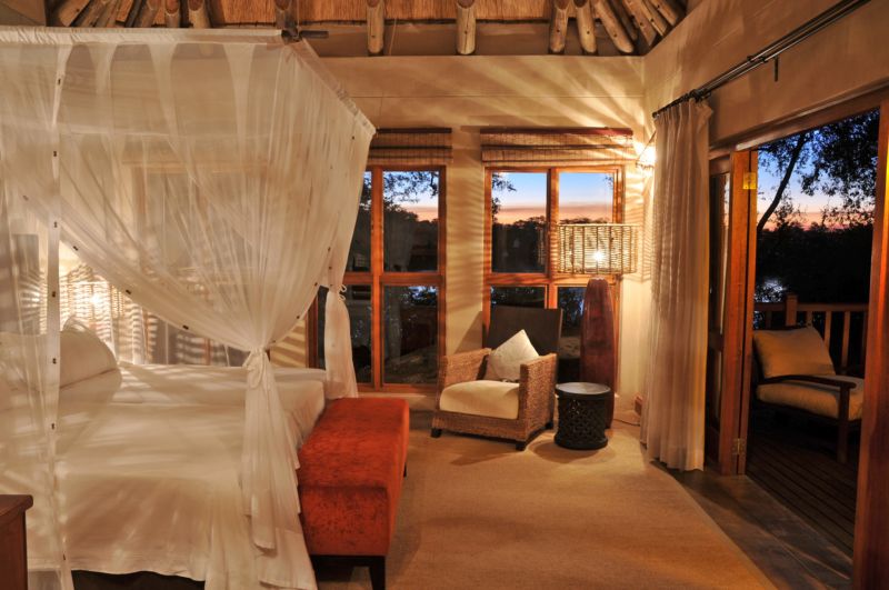 Divava Okavango Resort & Spa luxurious chalets with a large deck and bathroom. The king-size beds are covered with a stylish mosquito net and all rooms are air-conditioned, bathtub and your outside shower, the rooms also have an indoor shower and separate toilet, mini bar of the coffee and tea facilities.