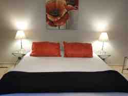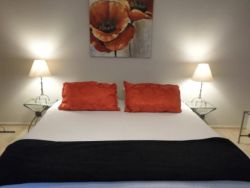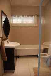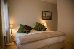 Room with double bed. Bathroom en-suite comprising shower, toilet and basin. Built in cupboards with chest of drawers. Television with full DSTV bouquet, WiFi and hairdryer. Door opens out to veranda and private garden.