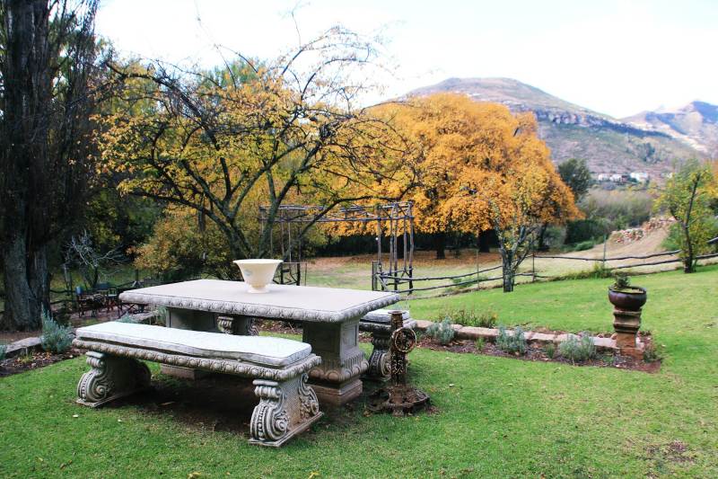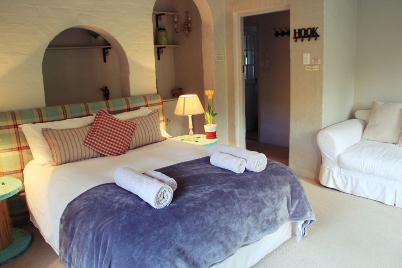 Each room has tea and coffee-making facilities. The bed linen is luxury crisp white percale and soft towels are provided for each guest. Each bedroom has a heater and extra blankets for those chilly winter nights and both bathrooms have a heater. Fans are also provided for hot summer days. The country style open-plan kitchen and dining room upstairs have wonderful views of the property and mountains and have a cast iron stove for winter. The kitchen is fully equipped with gas stove and convection oven, a fridge and freezer and microwave. Full DStv is provided upstairs.