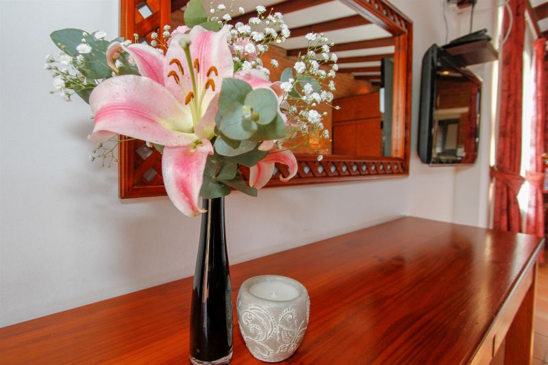 At Bayete Self-Catering you will find tasteful ethnic decor. Here are two very comfortable double units (double or single bed option upon request) en-suite, each containing a lounge with TV / M-Net / DStv and air-conditioning. Guests have their own entrance to their unit, each with a private patio and braai facilities. The large secluded and inviting pool is available to guests to frolic, sunbathe or do a few exercise laps.