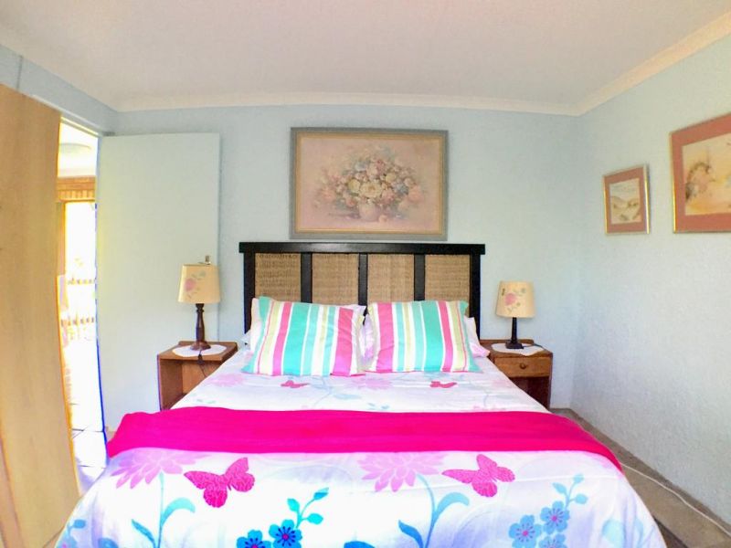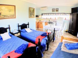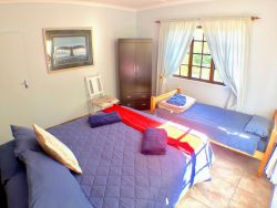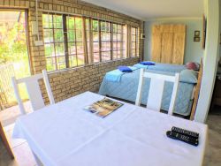 Accommodation is offered in Two Chalets, the Hibiscus Chalet and the Agapanthus Chalet. Hibiscus Chalet is a ground level chalet and can accommodate 4 guests. It is comprised of a double bed and 2 3/4 beds. Agapanthus Chalet is a first floor chalet with a verandah and can accommodate 6 guests. It is comprised of 1 queen bed, 2 large single beds and a bunk bed. Both chalets are air-conditioned and equipped for self-catering.