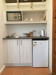 Our double rooms are en-suite with flat screen TVs (DSTV Stay Essential bouquet) and free wireless internet as well as a kitchenette with a microwave oven and fridge. All rooms have extra length queen size beds. Each room has its own private entrance. Most rooms have air conditioning.