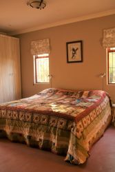 Our house is fully solar powered and features a rainwater harvesting system for water supply that can be supplemented with borehole water. We also sport a fancy composting toilet and make use of grey water for the other toilets. The kitchen has a gas stove/gas oven combination and we do not make use of microwaves due to their high power consumption. Trash is responsibly recycled and our chickens love all scrap food! Come and experience how easy and practical it is to live sustainable. We are happy to answer any questions and give advice on our green systems if you are interested in installing it yourselves. Guests are advised that the dishwasher, hair dryers (or other high wattage equipment) can only be used during 10 am - 4 pm when the sun is shining. For rainy days when the solar system is not charging we have a back-up generator. No pets, smoking, parties or events.