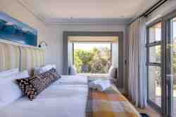 Set in the heart of Keurbooms’ natural beauty, is this stunning, newly renovated beach house. The spacious, light-filled upper level features open plan living areas, beautifully furnished in warm earthy tones and with large glass sliding doors that frame the breathtaking ocean view. The living, dining, and kitchen areas flow seamlessly together and open onto a large sea-facing patio, ideal for enjoying morning coffees or sundowners with a view of the ocean stretching all the way to Robberg Peninsula. A second patio at the back, overlooking the fynbos forest, includes a built-in braai for easy outdoor meals. Downstairs are three beautifully styled bedrooms, each with its own modern en-suite bathroom and access to a patio. Located in a secure beachfront estate with a communal pool, the home offers gorgeous first-row sea views and direct access to the soft, golden sands of Keurbooms Beach. Bedroom 1 – Garden Patio view • 1 x King bed (can be converted into 2 x single beds) with electric heating • Wall attached reading lights • 1 x Chair • Built in cupboards • En suite bathroom: Walk in shower | Toilet | Basin • Leads out to a patio - 1 coffee table with 2 x chairs Bedroom 2 – Garden Patio view • 1 x Queen bed with electric heating • Wall attached reading lights • Sleeper couch • 1 x Chair • Built in cupboards • En suite bathroom: Walk in shower | Toilet | Basin • Leads out to a patio: 1 coffee table with 2 x chairs Bedroom 3 – Main Bedroom with Garden view • 1 x King bed with electric heating • Wall attached reading lights • Ceiling fan • Sleeper couch • 2 x Bedroom chairs • Built in cupboards • En suite bathroom: Walk in shower | Toilet | Basin • Leads out to a patio: 1 coffee table with 2 x chairs