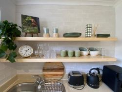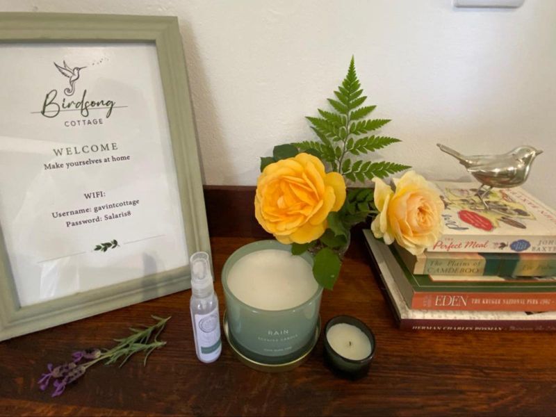 Experience the rich history of Swellendam from the comfort of Birdsong Cottage. Nestled in the spectacular Gardens of a 100-year-old property, this recently renovated one-bedroom cottage comfortably accommodates 2 guests and features a cosy lounge complete with fireplace and TV offering streaming services and Netflix. Amenities include a king-size bed, dining table, tea and coffee facilities and a well-equipped kitchenette with air fryer, toaster, kettle, and bar fridge. The large en-suite bathroom has a shower, toilet, and wash basin.