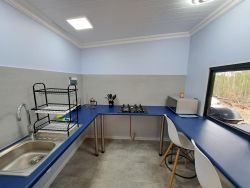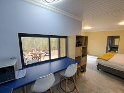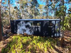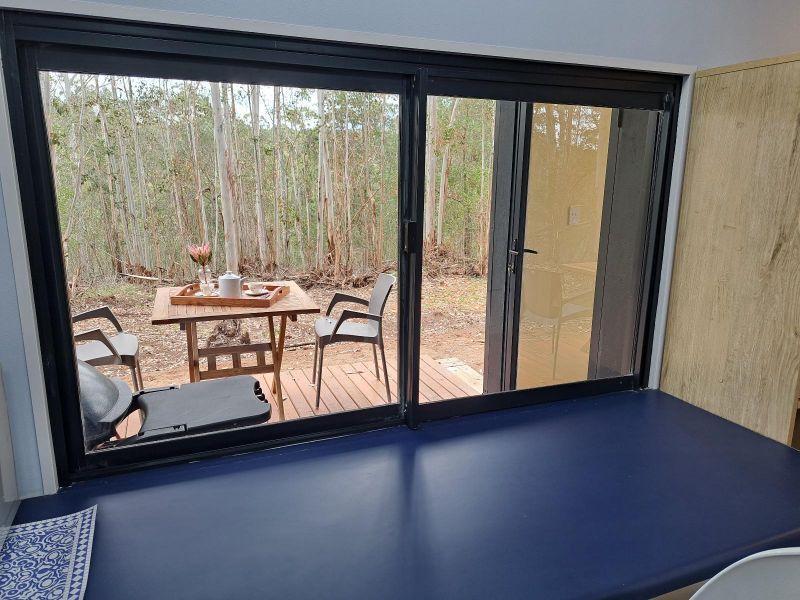 Zest Forest Retreat is situated 3km from the tranquil village of Friemersheim, just outside Great Brak River. Nestled at the foothills of the Outeniqua Mountains, surrounded by lush indigenous forests and scenic countryside. The retreat offers the perfect escape from the bustle of everyday life. The unit features an open-plan design with an XL length super king bed and an en-suite bathroom with a shower, complete with essential bathroom amenities for your comfort. The space also includes a fully equipped kitchenette with all the essentials, including cutlery, crockery, a 4-plate stove (excluding an oven), a microwave and a combined bedroom/living area, perfect for a self-catering stay. Step out onto the deck to enjoy forest views and make use of the gas BBQ/Braai for relaxed al fresco dining. Free on-site parking is available, and for a truly peaceful experience. The retreat does not offer Wi-Fi or TV, allowing guests to disconnect and fully unwind amidst the tranquil surroundings. Zest Forest Retreat offers a serene hideaway amidst forested hills, with easy access to the Garden Route and its array of beaches, towns, and scenic attractions.