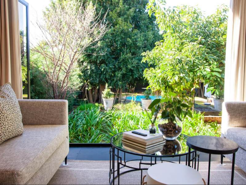 Welcome to Paarl Hideaway, where elegance and luxury meet in the heart of the Cape Winelands. Ideally situated in the charming town of Paarl, our guesthouse draws inspiration from the area's rich heritage, blending timeless style with modern comfort. Nestled opposite the historic De Hoop Farm, Paarl Hideaway boasts breathtaking views of surrounding vineyards and offers easy access to world-renowned wine estates and acclaimed gourmet restaurants. Relax in our beautifully appointed rooms, each featuring sumptuous Egyptian cotton linens for a truly restful stay. Unwind in our tranquil garden, take a dip in the sparkling pool, or lounge beneath the swaying Avocado tree. Your private oasis awaits. Experience the warmth and care of an owner-managed Retreat, where every detail is thoughtfully curated to meet world-class standards. Discover your perfect escape at Paarl Hideaway.