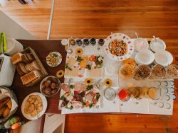 Cornerstone Guesthouse offers bed and breakfast accommodation in six double or twin rooms and a family room that can take up to four people. The rooms each have a private entrance and patio with table and chairs overlooking a tranquil and peaceful garden. Inside, the rooms are light, spacious and neat with tile and wood floors, beach house colours and your choice of double or twin beds. All rooms have en-suite bathrooms with large solar-assisted showers and modern fittings. There are three 6-sleeper self-catering apartments to book as well. The breakfast room at Cornerstone Guesthouse is large, light & airy and served at individual tables. We offer an inclusive breakfast with a wide selection of fresh fruits, juices, yoghurts, freshly baked breads, preserves and eggs and bacon cooked to order. Wash that all down with our freshly brewed coffee or your choice of tea and you'll be ready to explore the attractions of Swakopmund and the Skeleton Coast.