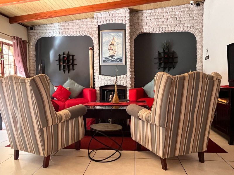 5 x Luxury rooms each with en-suite bathrooms Our rooms all have a television with Full DSTV, hospitality trays, hairdryers, lockable safes and heater/fan for your comfort. Guests have access to the elegant and comfortable, communal lounge with a fireplace and a television with Full DSTV. The dining room overlooks a sparkling swimming pool and a beautiful garden filled with birdlife. You also have access to the jacuzzi, sauna, pool table, soccer table and braai facilities.