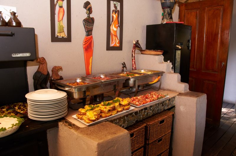 Shindzela’s layout encompasses of an open-plan lounge, dining room (breakfast and lunch served here) bar area overlooking a dry river bed and a small watering hole where animals flock for a drink of water during the hot summer days.