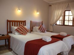 *This bed and breakfast has an air of serene simplicity. The large garden has a swimming pool ideal to cool off on a hot Karoo afternoon. *While there are many good restaurants in town, braai facilities have been provided for those who just want to sit around a fire in the beautiful Karoo evenings. Breakfast is served in the breakfast room. *Children are welcome to enjoy the play area in the garden under the oak tree. They will also love feeding the carp that swim in the fish tank just outside the reception area. *Most of our town's tourist attractions are within walking distance of the premises. These include museums, historical buildings, monuments, curio shops and restaurants
