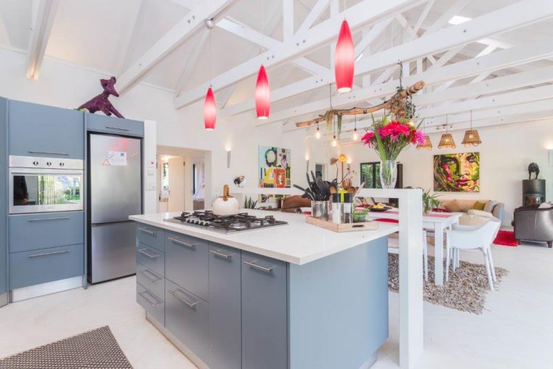 The Purple Dog is a spacious, neat, modern house, full of fresh character and flooded with light. The upmarket furniture and artistic interior mixes perfectly in keeping with its location: sun-kissed open plan living, dining and kitchen area with bar, cooking island and a hobby chef's array of pots, pans and appliances.