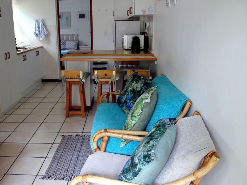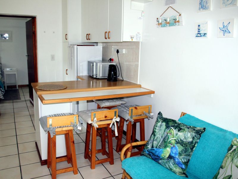 The bedroom offers a double bed (bedding and towels supplied), built in cupboards and electronic safe.En suite: Shower, WC and basin. The living room has a bunk bed, a couch, easy chairs, TV (DStv Easy-View) and built in cupboard. The open plan kitchen offers an under counter fridge, hotplate/oven, microwave oven, kettle, toaster and kitchen utensils for four persons. The living room leads to a separate private patio with a built, undercover braai and an outdoor shower. Parking for one vehicle and trailer is available. Sea Why is suitable for older people since all areas are on the same level. Bedding, bathroom towels and kitchen towels are supplied. (Enough blankets available for winter visits). Please bring your own beach towels.