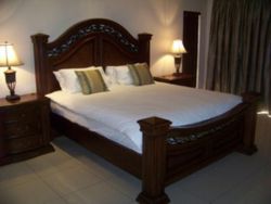 Airconditioned double room with 2 x three-quarter beds and en-suite shower room. Linen and towels, desk, bar fridge, hairdryer, tea/coffee tray, mineral water, flat screen TV with satellite channels and free wi-fi. Balcony with pool view. Secure parking