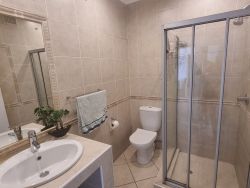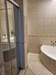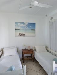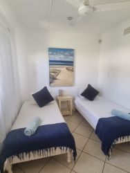 Security consists of armed reaction by the local Security company, full sensors inside the house and the latest RX beams outside the house. French timber doors and windows with built in steel burglar bars. All sea facing rooms have sliding doors that can be fully opened but the timber (steel inside) open frame can be kept closed to allow fresh breezes into the room day or night. A camera system round the house is monitored 24/7 by the security company. A monitor with all cameras in view is also in the main bedroom. An electric fence surrounds and sets off a separate alarm if breached. The front gate is automated as is the garage door.