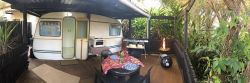 Situated at the Fairhills Caravan park in Ramsgate KZN, Sams Van is a small 2 sleeper self catering caravan with double bed, fridge/freezer, stove and small oven, microwave, with a private deck with braai facilities. Convenient access to caravan park ablution block. Access to all caravan park amenities.
