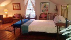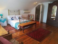 The relaxing and private atmosphere with a soothing water feature creates the mood to use the small Jacuzzi and massage bed upstairs. The antique furniture is all of the different types of solid wood e.g. yellowwood, Stinkwood, Teak and Oak which complements the Oregon pine woodwork of the ceilings floors and shutters of our quaint cottage.