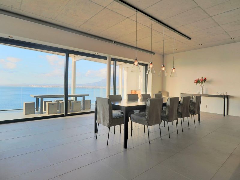 Located on Gordon’s Bay Mountainside, this stunning architect-designed property offers spectacular views of False Bay, Table Mountain and the Helderberg mountain range. The house has been luxuriously furnished and equipped in a contemporary open plan style with high ceilings, large living areas and floor-to-ceiling sliding glass doors that provide stupendous panoramic views from every room.