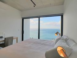 The master bedrooms have a bath and shower in the open plan area allowing you to admire the view as you bathe. They also have TVs. One of the guest rooms has its own kitchenette area, making it self-contained.