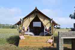 Its simple design belies the luxury within, with room for proper beds in separated bedrooms, and a stylish, well-equipped kitchen and dining area. A spacious veranda, where your guests can enjoy the great outdoors, a quiet moment with a book or a coffee, completes the look. It's perfect for couples, a family holiday, or a breakaway with friends. This tent can, in comparison to our other tents, fit up to 6 persons.
