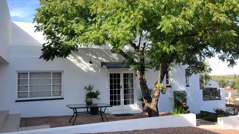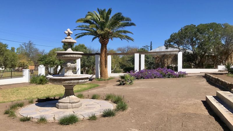 A spacious queen room with private entrance, veranda, shower/toilet and boasts very elegant decor. The room has an extra wide+long queen size bed, full size fridge-freezer, smart TV & free wifi and a beautiful garden full of Karoo succulents.